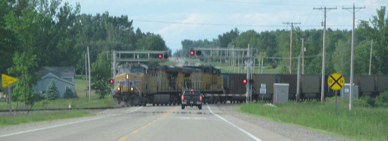 Highway 13/34. This area used to have simpler crossing protection, without gates. But last year it got new signals and gates, |