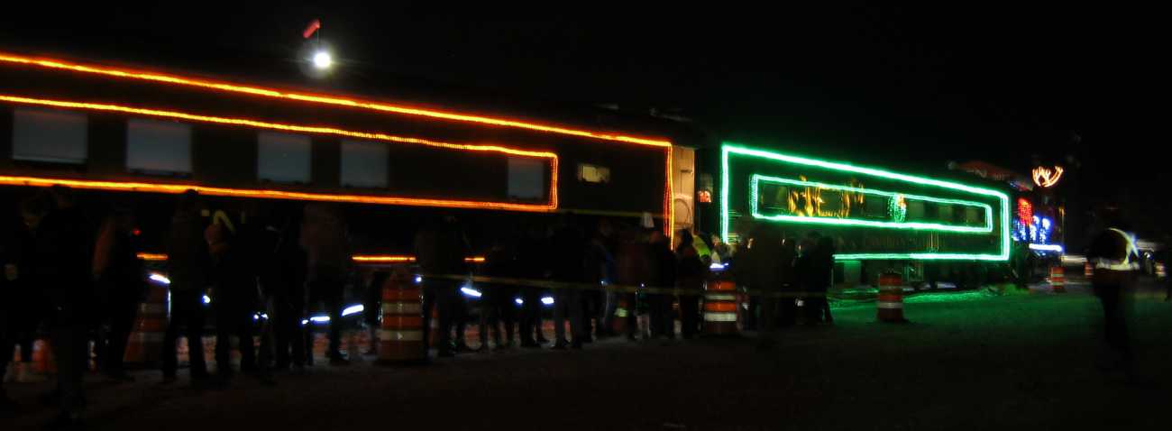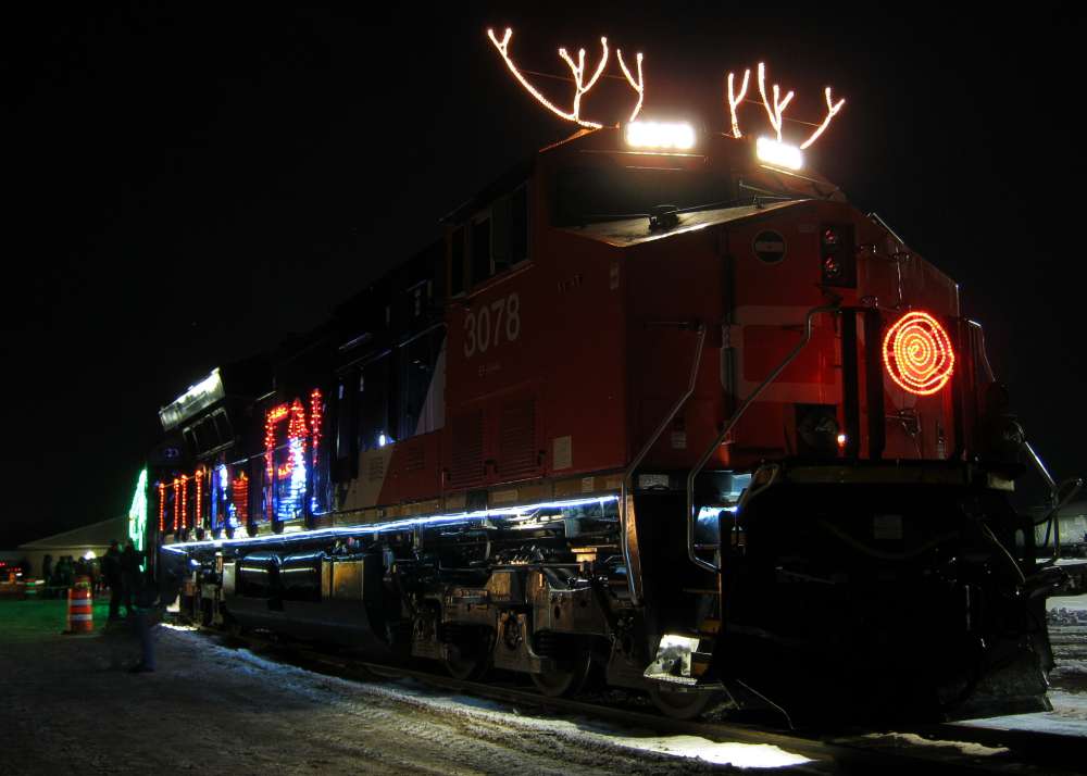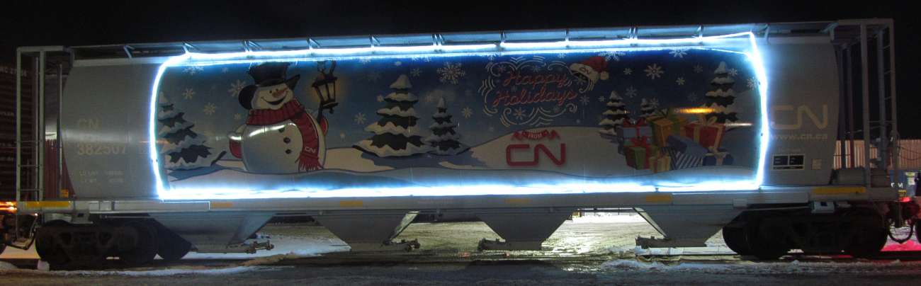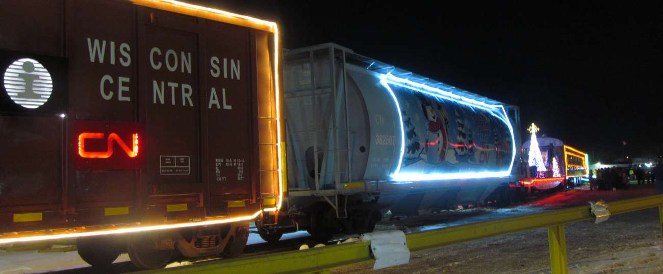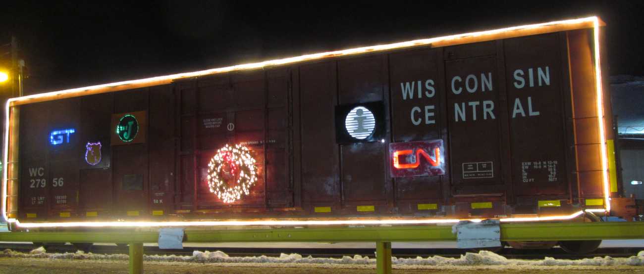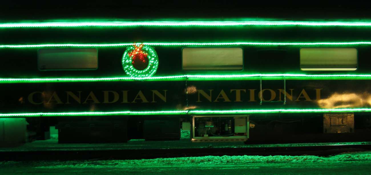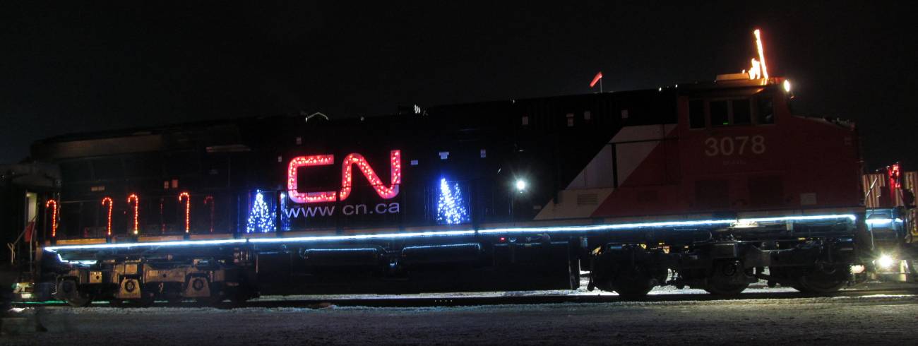 The CN Santa train was in Stevens Point, Wisconsin, December 3, 2019 It was parked by the railroad car shops. A warming tent with cookies and coffee was also nearby. All of it was a very nice display. |