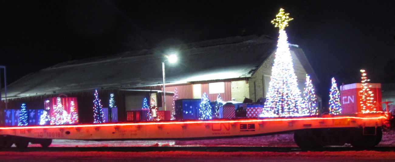 (the Point Car Shops are in the background) The little red container packages had CN 100 on them, their 100th anniversary. |