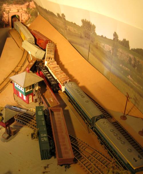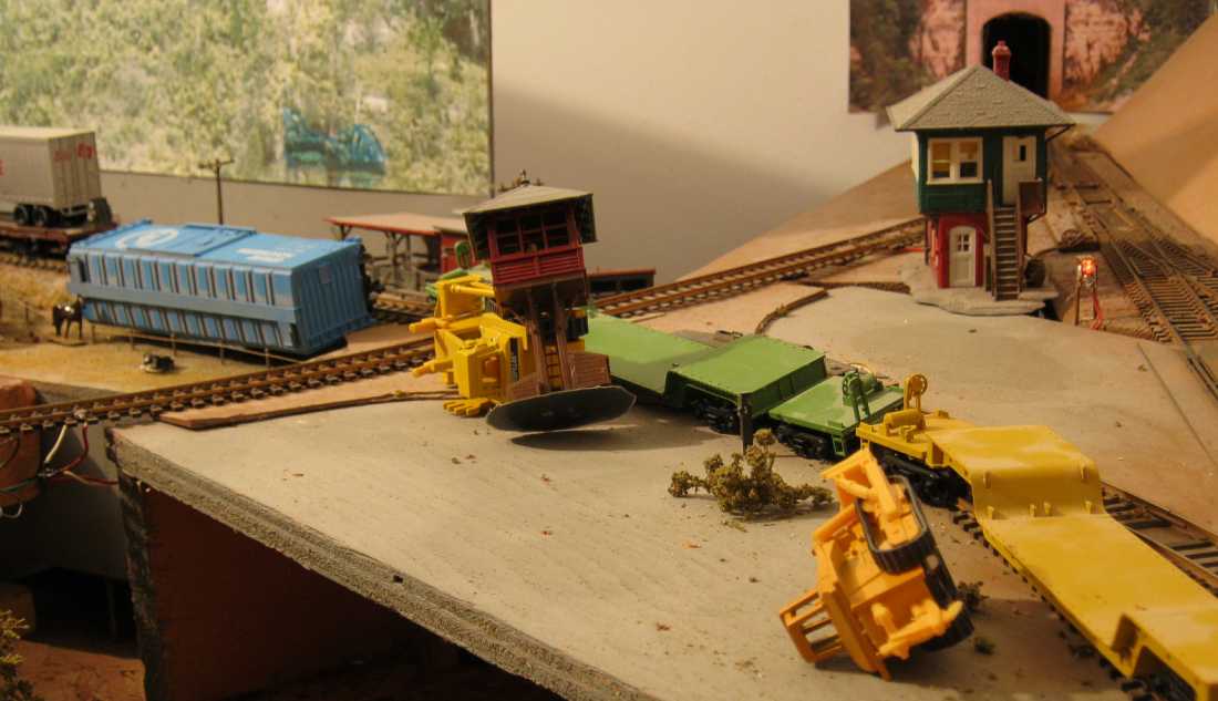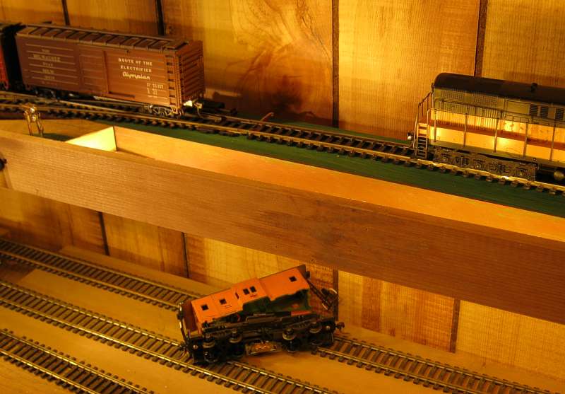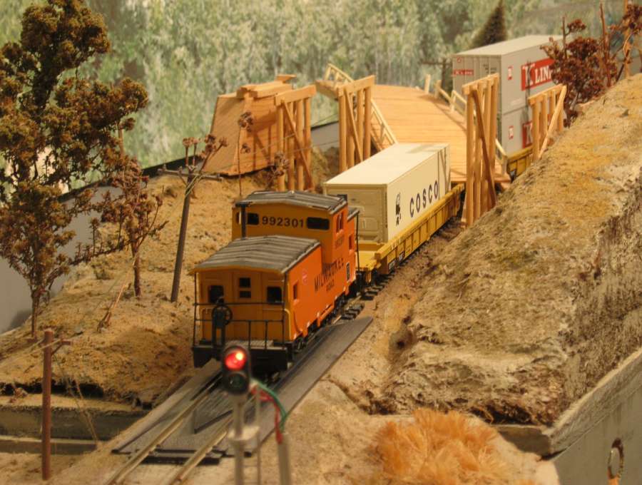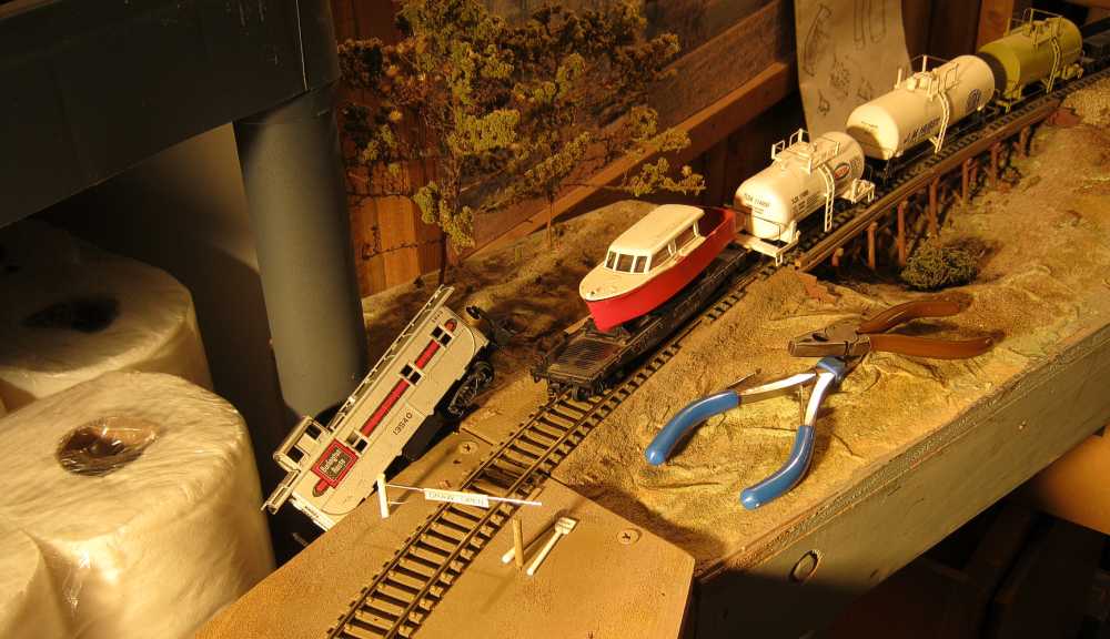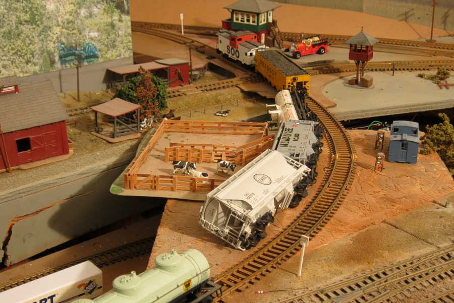 And this one shows the importance of a protective gate, and some padding. I have drawbridges with swinging gates to protect against running a train into the river (onto the floor). And usually it's not the engine that threatens to take a dunk, it's the caboose during a reverse movement that is hidden and not watched by the crew.