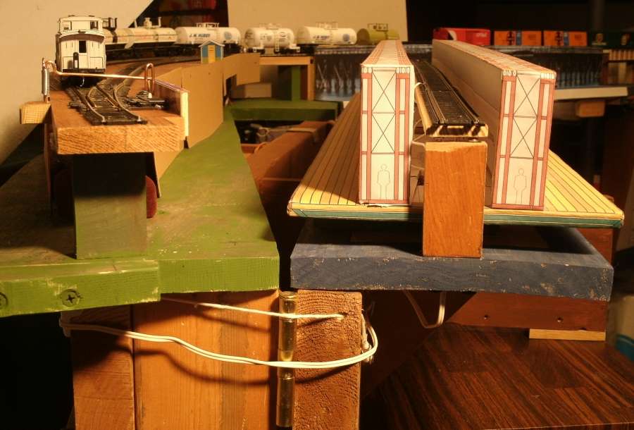 My original model railroad plan from 20 years ago was to make two bridges to be able to walk in through the two aisles of the basement. But back then, I took the quick direct route, and 'temporary became permanent' for a long time. It allowed a walkway for aisle 1, but not aisle 2 and 3. And it could only be operated from aisle 1. I would have to duck under the others. With two pontoon draw bridges, all three aisles have access and can be opened from any walkway. |