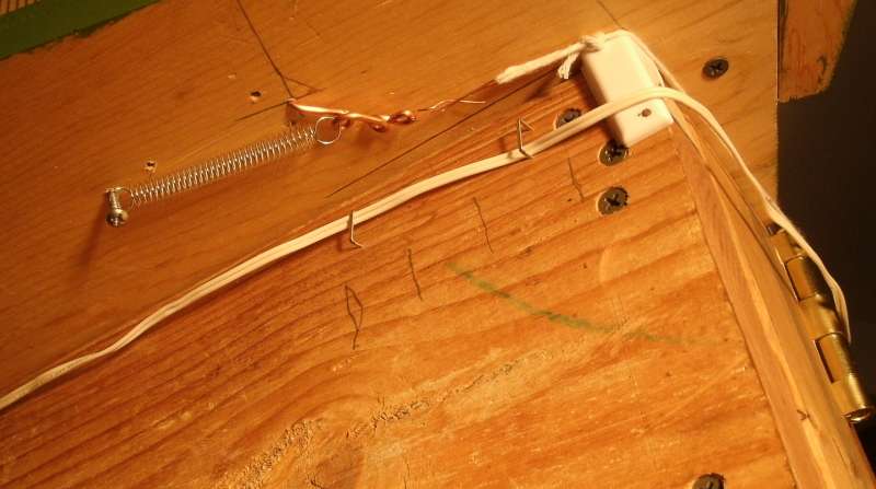 Underneath the board is a spring and linkage to swing this gate.