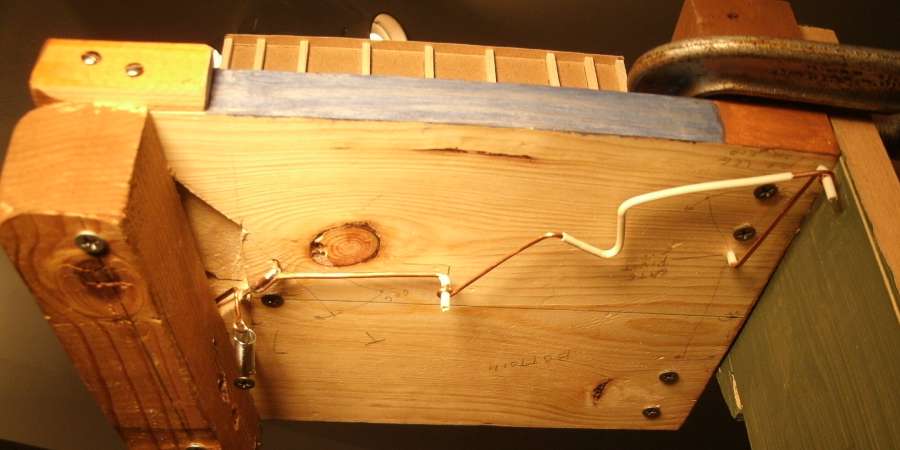 Underneath, there are wire pivot cranks and push rods to automatically control the gate.