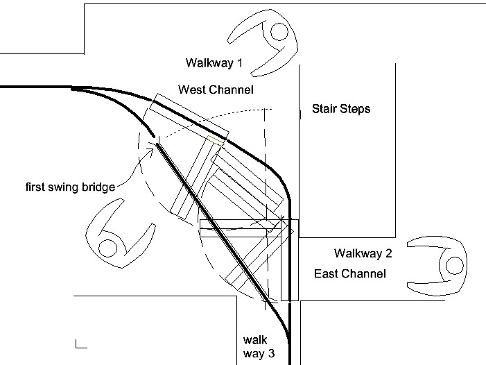 | This is each bridge, swung half-way open. |