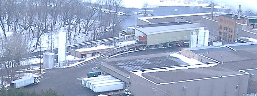 There is a low dam west of the buildings, about 10 feet of head. Not much. Most mills would also receive coal for the boiler for steam heat to dry the paper, but I don't have any history of how or where the track was for that. Natural gas would have been available 40 years ago. But I could GUESS that a coal car could go to the end of the south track, close to the boiler room? |