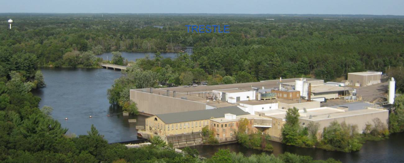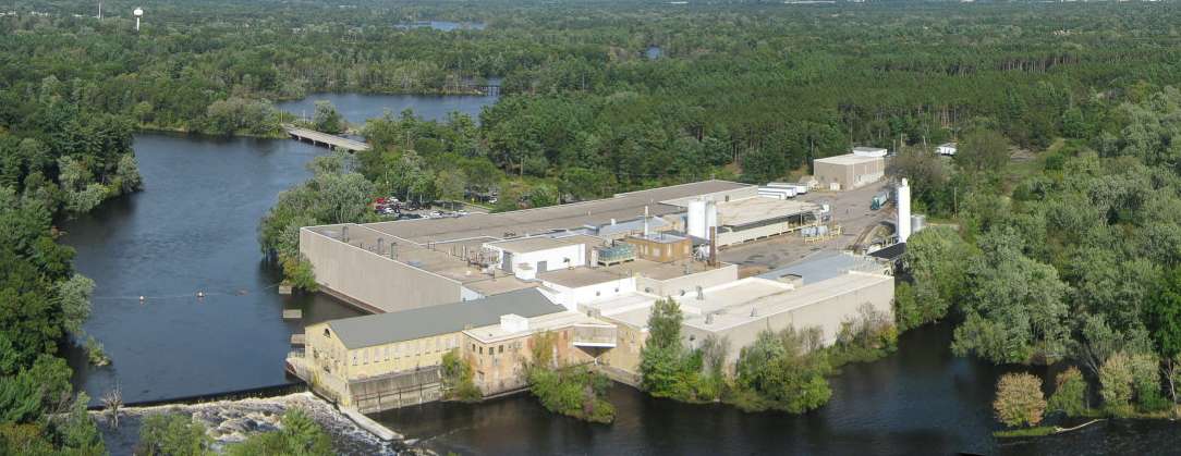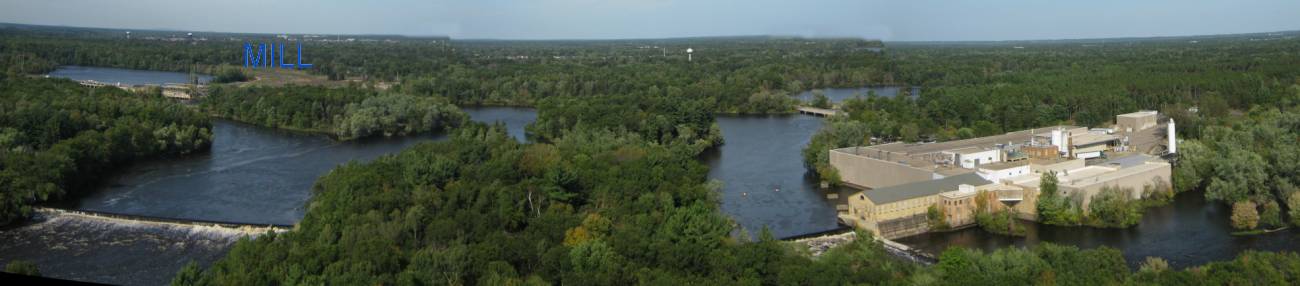 There is a small paper mill at a bend in the river channel. I named this page 'Little Rag Mill of Whiting' because it is small compared to the big mill that was a mile north (that was demolished in 2014). (and not to be confused with the 'stink mill', Stevens Point Pulp and Paper Company, that has completely disappeared from McDill Pond, two miles to the northeast.) Sometimes I don't use owner's names for the mills, I use the location, because owners change over the years. This mill started as the Plover-Whiting Paper Mill. Kimberly Clark had their name on it for a while. Currently, it is the Neenah Paper Whiting Mill.