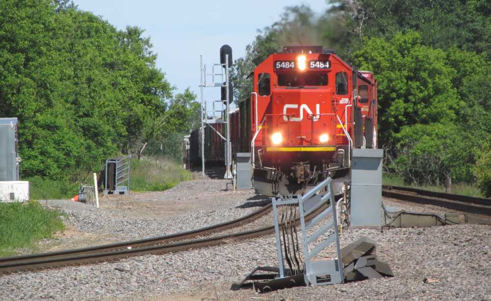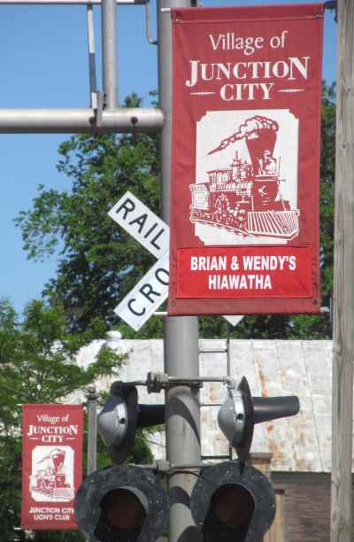 While one train is moving from the south to the West, here's another moving from east to north. This afternoon train is leaving the main and going north to Wausau. (that's good scheduling and use of the junction) |