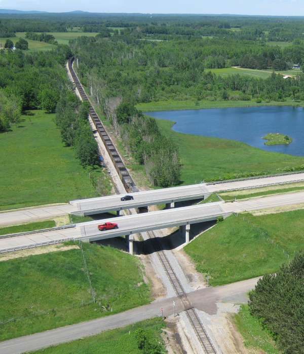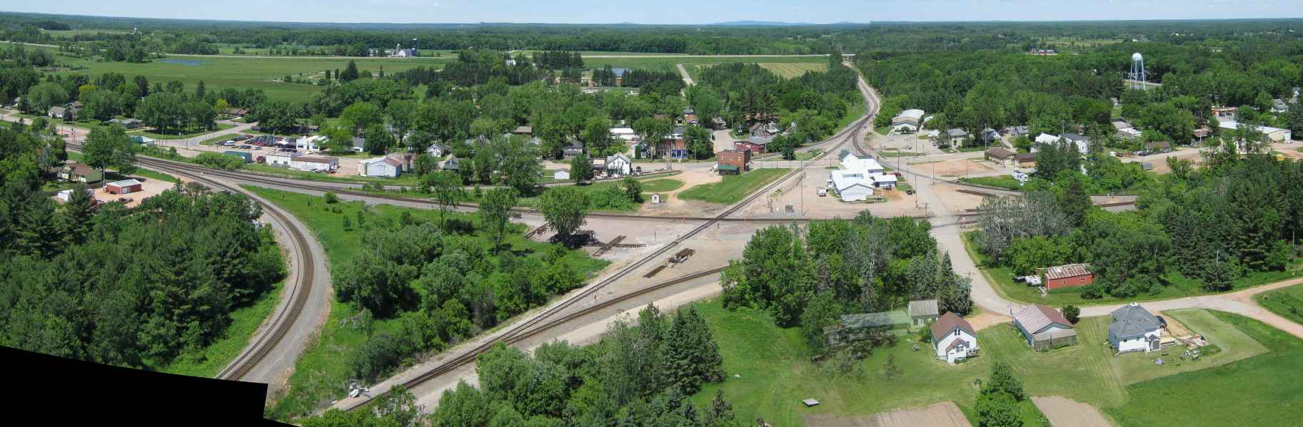 The aerial view below is lookng north, and its a wide picture; so scroll right. West is on the left. US Highway 10, a four-lane highway, is a thin gray line at the top of the picture. |