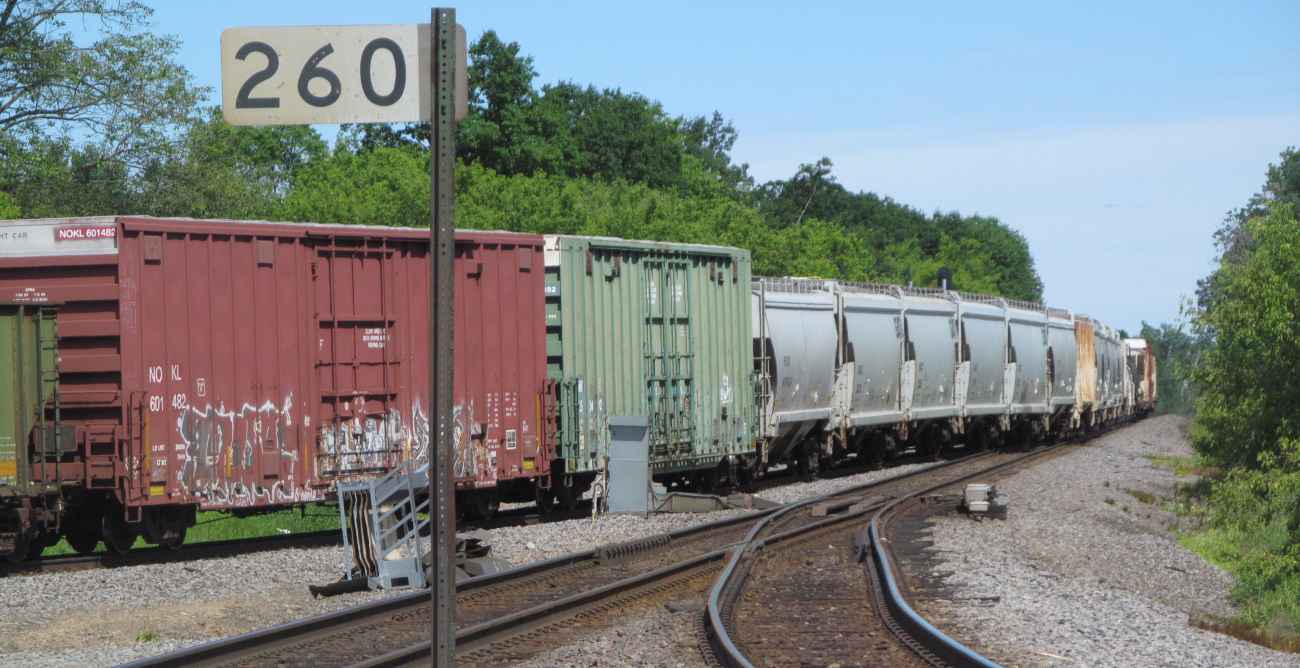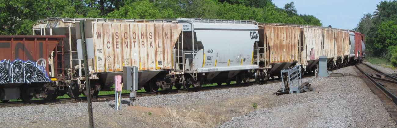 Looking south / southwest, is Hiawatha siding. Wisconsin Rapids is out of sight, to the left. Here's a link to my 2019 webpage of Hiawatha: Hiawatha Sand Train but you'll hve to use your browser back button to return to this page