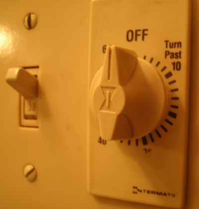 The original factory 15-minute clock wound timer has 15 minutes in 3/4 of a turn. When the clock is taken away from the electrical enclosure and its switch, the clock shaft actually turns 20 minutes for one turn. And it can make more than one turn; this one can make 4 turns before the spring is all wound down.