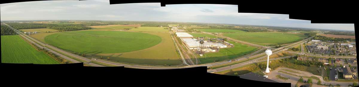 Here's a set of pictures stitched together, and not cropped yet. It is over 180 degrees of view along a straight highway, US 51 / I-39.
