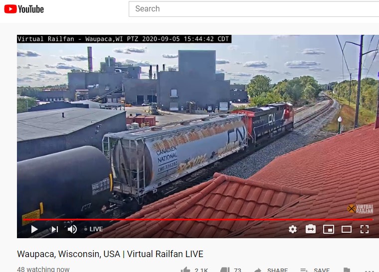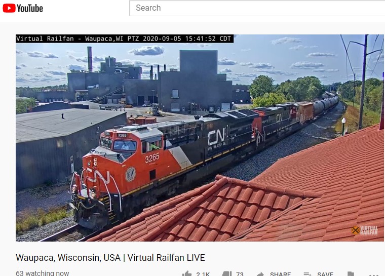 After that train stopped in Nelson siding to clear another train, it went past the Waupaca Depot Webcam: