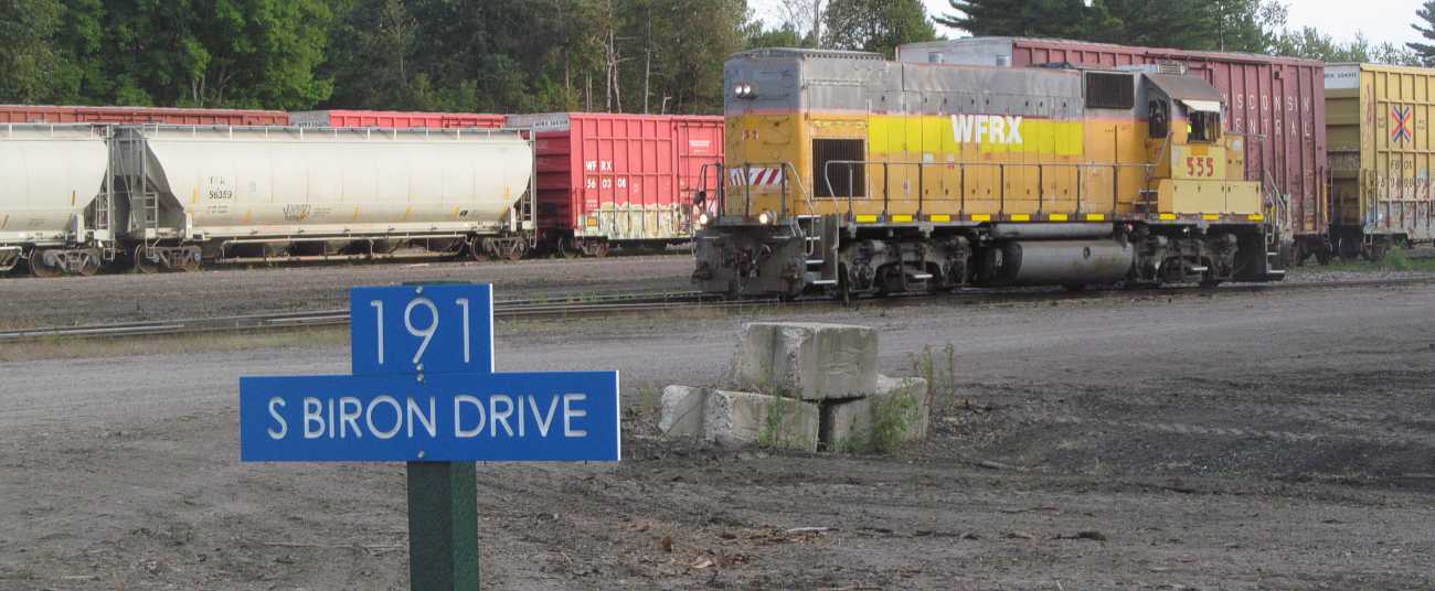 The rail yard, and Biron Drive.