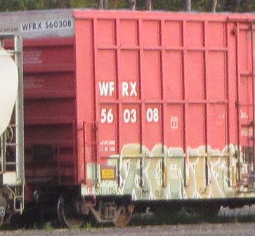 Red WFRX plug door boxcars for hauling out paper rolls.
