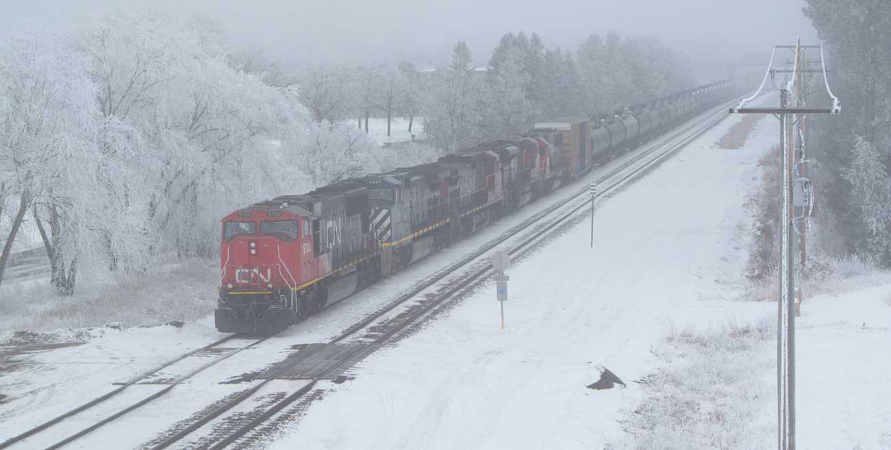 There's five locomotives on this relatively short train to Rapids. Maybe there is a need for power for Taylor Subdivision sand trains coming back? This train used to have a hundred cars when the big paper mill in Wisconsin Rapids was operating. But that idled in 2020. |