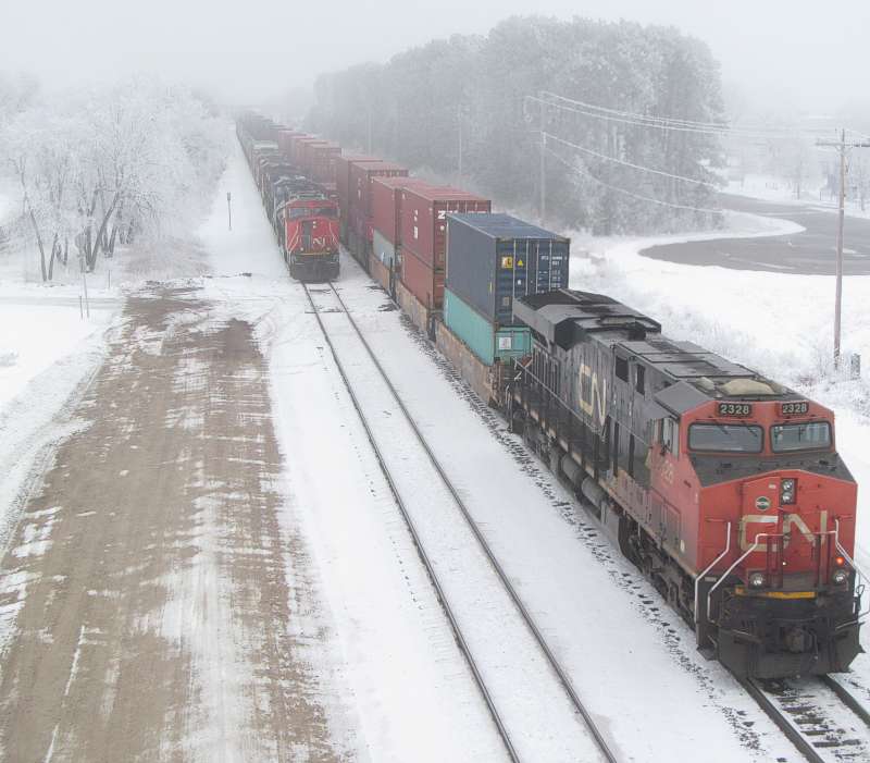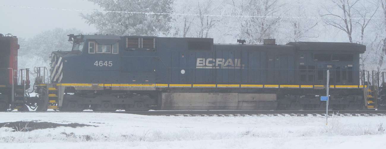 Monday January 4, 2021. We had a frosty day on Sunday, and surprisingly the frost just kept growing into Monday. We usually don't have 2 or 3 frosty days in a row. Also, foggy, all day long. Some sunshine would help, but then the frost melts. I had a 'heads up' from the Waupaca depot webcam that train 491 was coming, and I watched it pull to a stop by Hoover Avenue. |