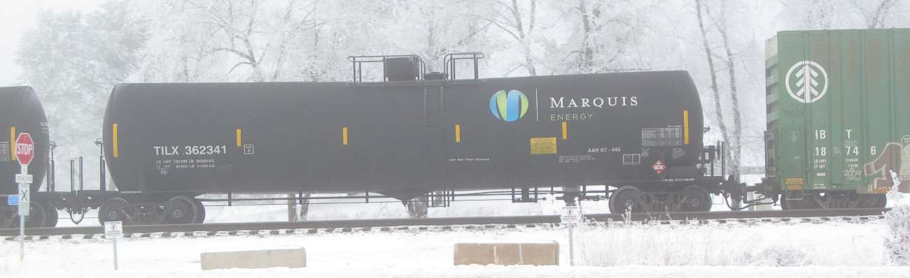 A half dozen empty Marquis alcohol tanks roll by. That's a sure sign this is train 491. Eventually, these will end up at the Necedah alcohol plant. |