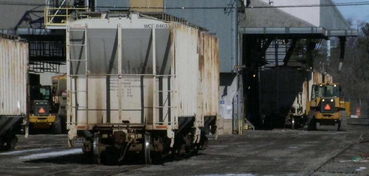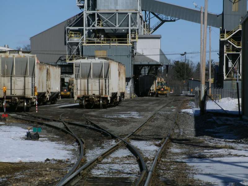They have at least two big wheel loaders. Each can push two or three empty hoppers from the little yard to the loading bays. |