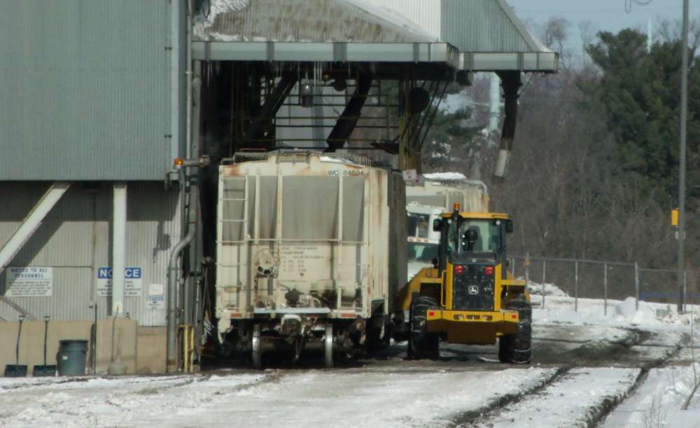 I hear there is now a trackmobile working the plant. I haven't been near there in 2020; I am used to seeing endloaders / wheel loaders moving cars. I remember one wheel loader having a coupler, but here it seems that a push on a poling pocket on the corner will do. Actually, I haven't really examined a hopper lately. Do they still have poling pockets like 50 years ago? |