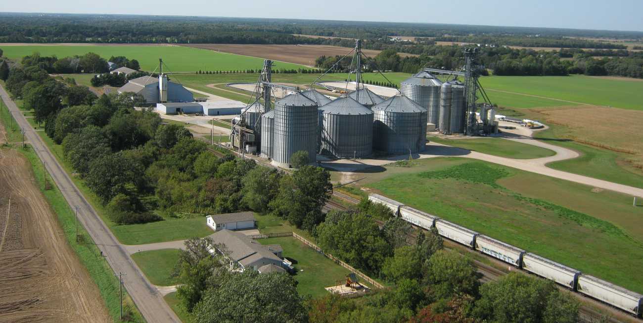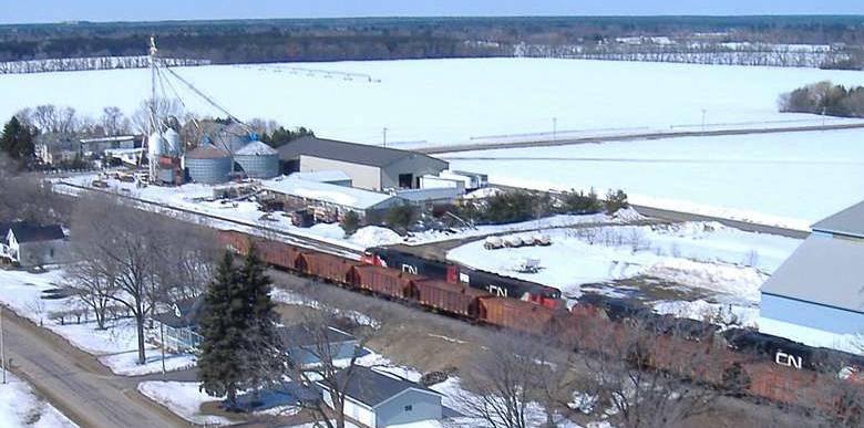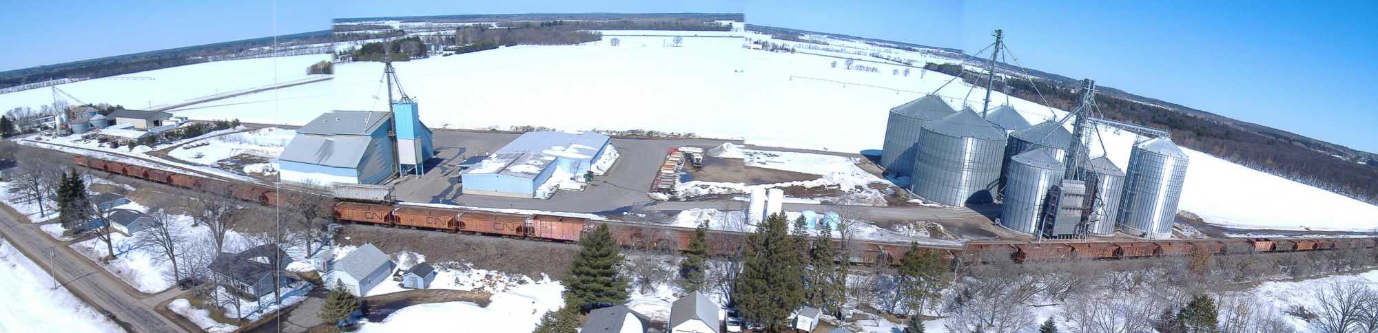 I call it the Stockton Feed Mill, but it is currently Wolf River Grain in Stockton, Wisconsin. They buy local corn and soybeans and ship it out. Corn can be tuned into ethanol. Or, grain can be exported. They are a few miles east of Stevens Point, and a mile east of Orchard siding. September, 2021