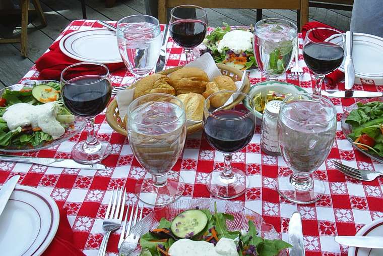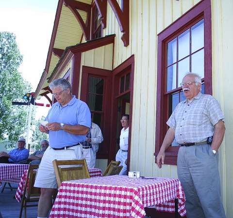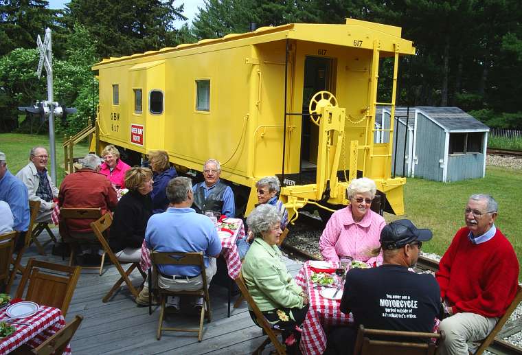 The noon meal was billed as a Genuine Railroad Luncheon. And we didn't have to worry about Rule G today. Everyone had a glass of wine for a toast to the completion of the Caboose. |