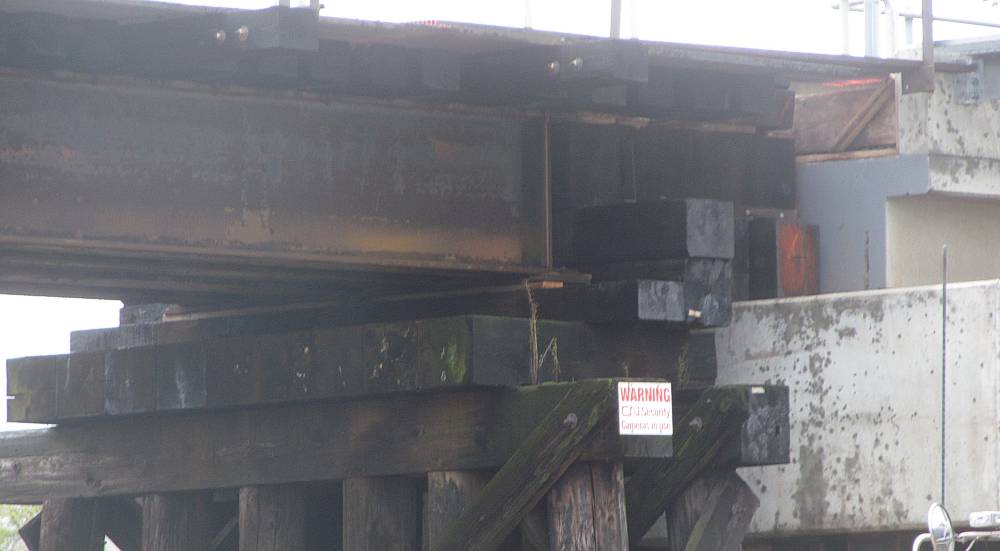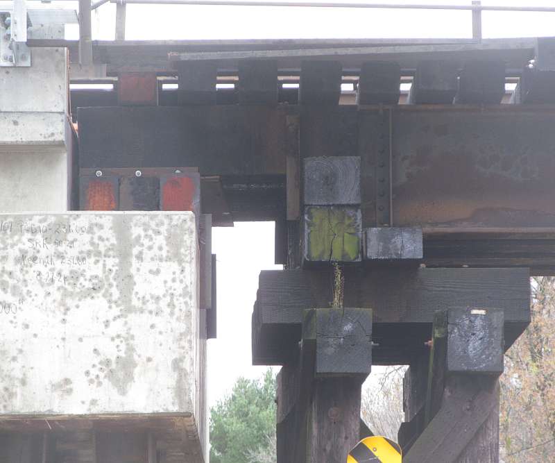 And I see why the work didn't take as long as I thought it would, the original steel girder bridge and it's wood pilings are still there. It's just the approaches that had the new work. A two-foot long steel girder fills the space between old and new. |