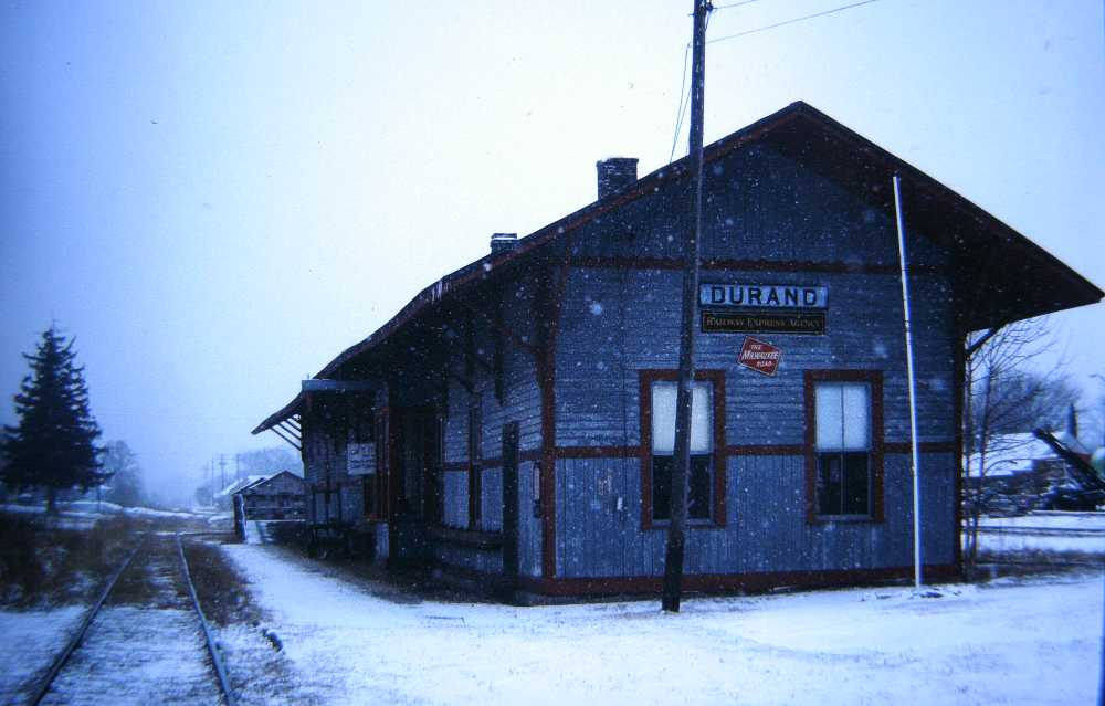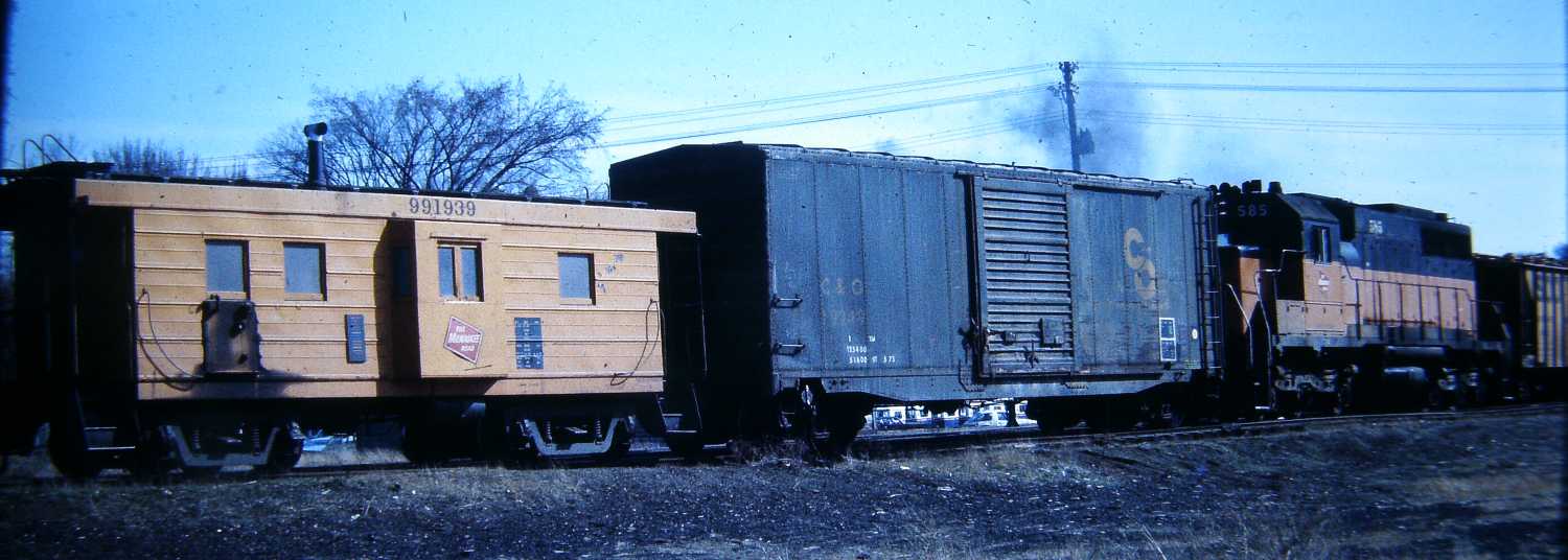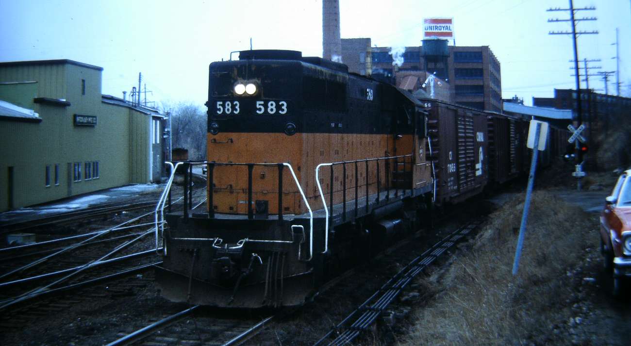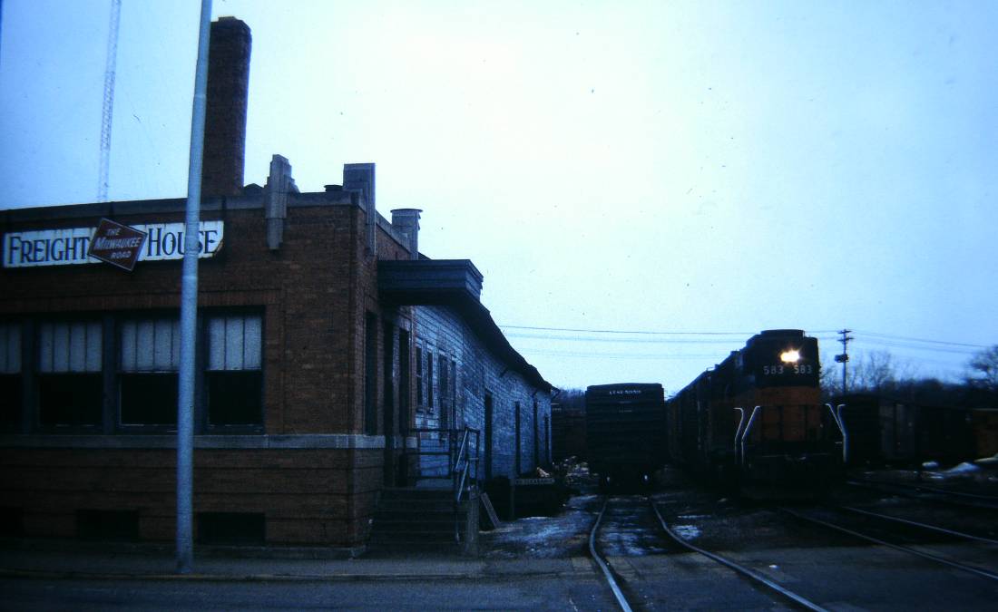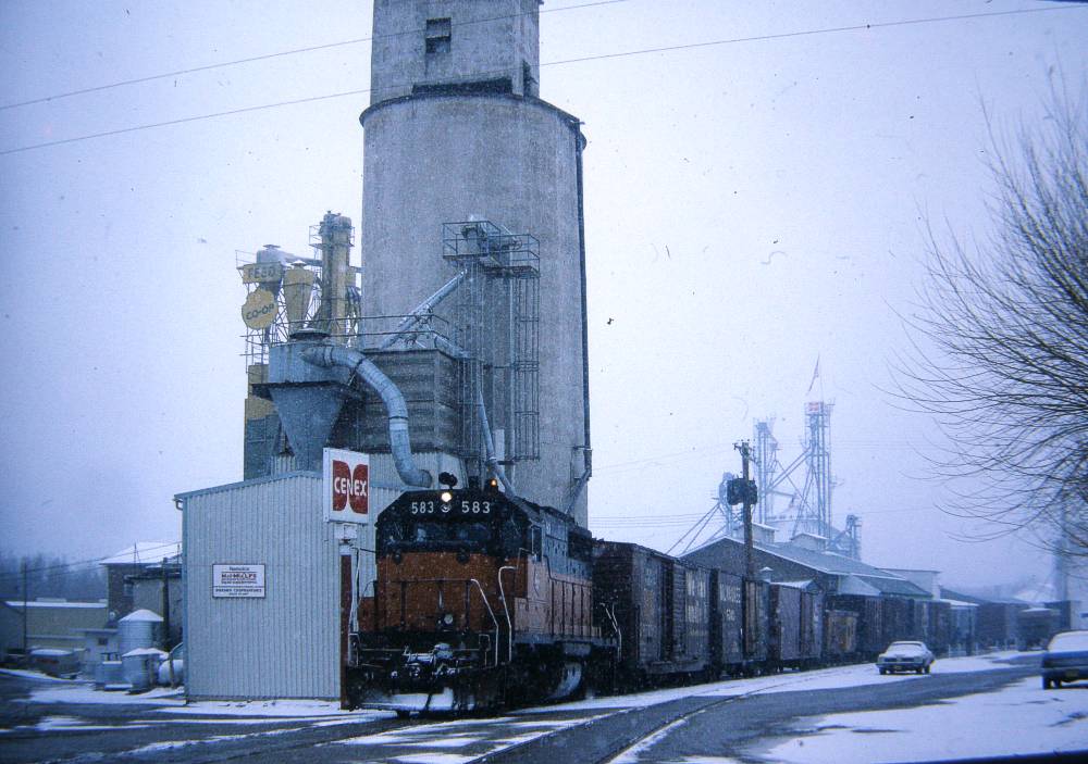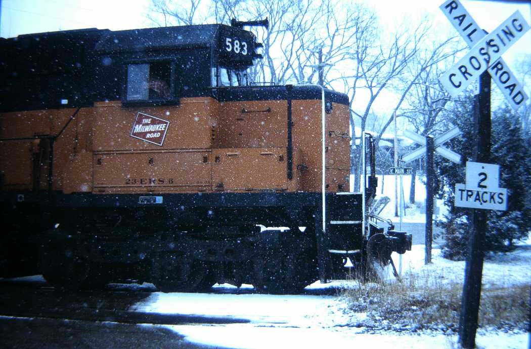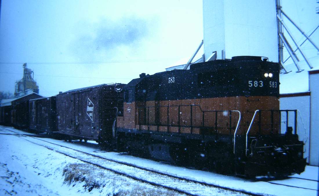 The next pictures are from March, 1980 This is the last week of Milwaukee Road trains running to Durand, south of Lacrosse. It's a Saturday. I heard afterwards that the run to Durand normally didn't take place on Saturdays, but with the approaching closing of the line, insulated boxcars of food products were being rushed to the Durnad Surefine warehouse. (the last minute rush sounds familiar. Just before the Cornell line closed, a year's worth of cars were rushed in, with the last chance to get rail loads before switching to trucks.) |