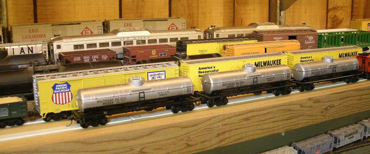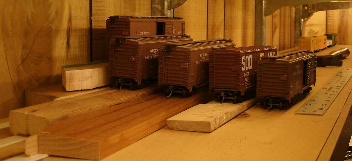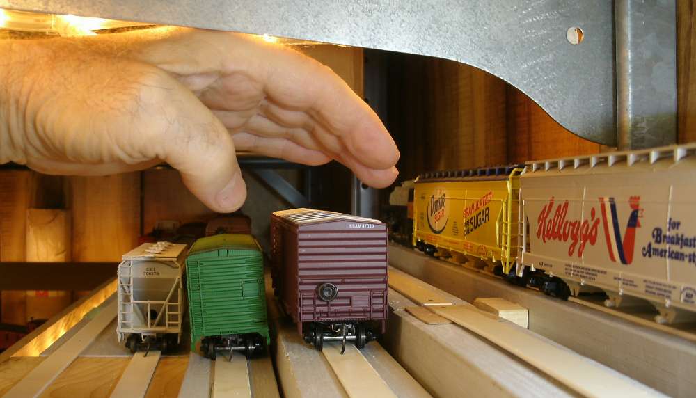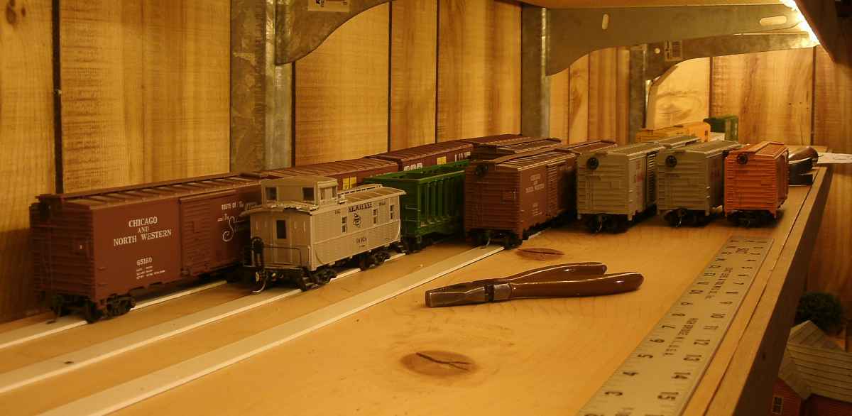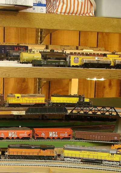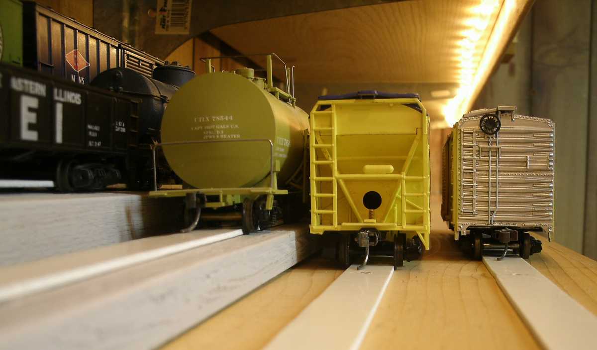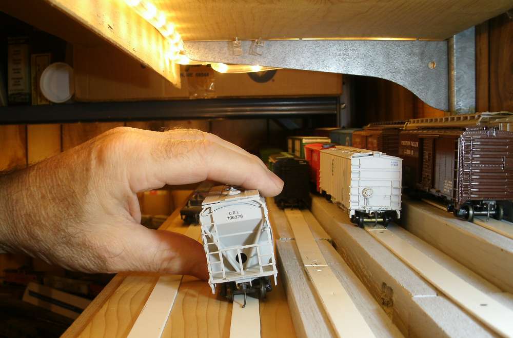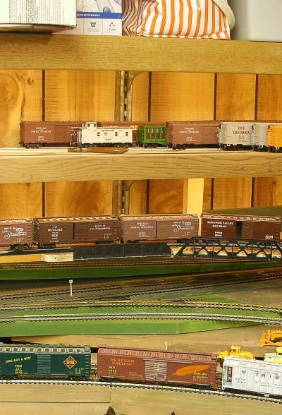It's good storage for rail cars, they have enough clearance to roll. I found out that this is almost earthquake proof; I was pounding nails and the cars didn't jump off. |