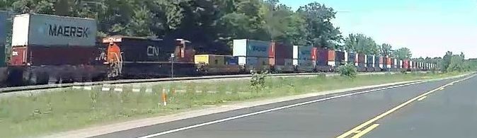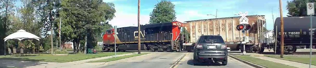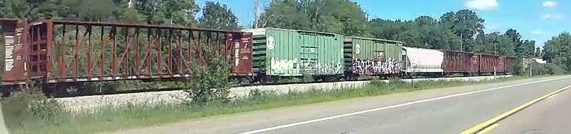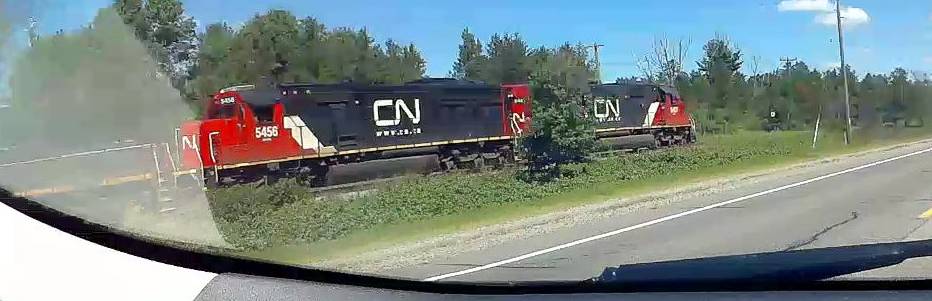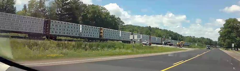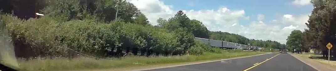 And heading north on Wis 34 at noon, we are slowly catching up with a CN train going toward Wausau. I was going 58 and I think they were doing 45. |