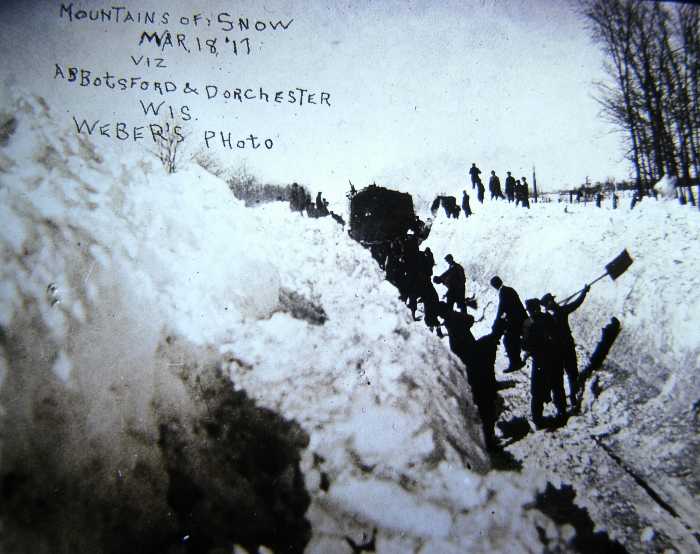 The rolling hills between Abbotsford and Dorchester. Norm said the Soo Line kept a gondola plow in Abbotsford to plow this stretch most every day, and to do the occasional weekly plowing to Athens. But sometimes they caught heck from the dispatcher for all the extra time to hook on the plow and run these few miles and return to park the plow and then continue the trip for the local job. There were also complaints from 'higher up' because running the plow for a few hours counted as an extra days pay Although, they were told to do it in the afternoon, so the night train wouldn't get stuck or slowed down by any drifts. |