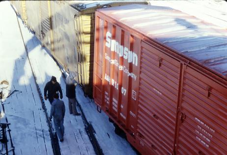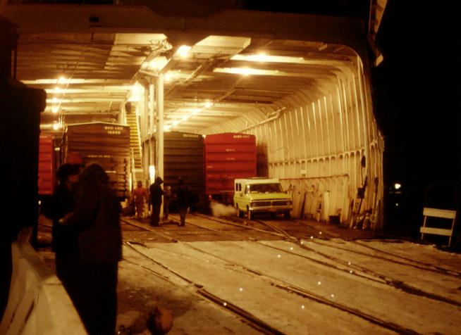 The 'ferry in the fog' scheme began to appear on freight equipment with the lease of 20 hi-cube boxes for auto-parts service in 1979. ....thanks for the link to the AATTW page. The next set of images on the Photo Gallery page will probably be from the early AA-TSBY era, with 'ferry in the fog' boxes strewn around the background -- check it out in a couple of months. Evan |