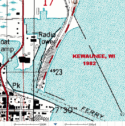 Kewaunee, Wisconsin, map dated 1982 from Terraserver web site.