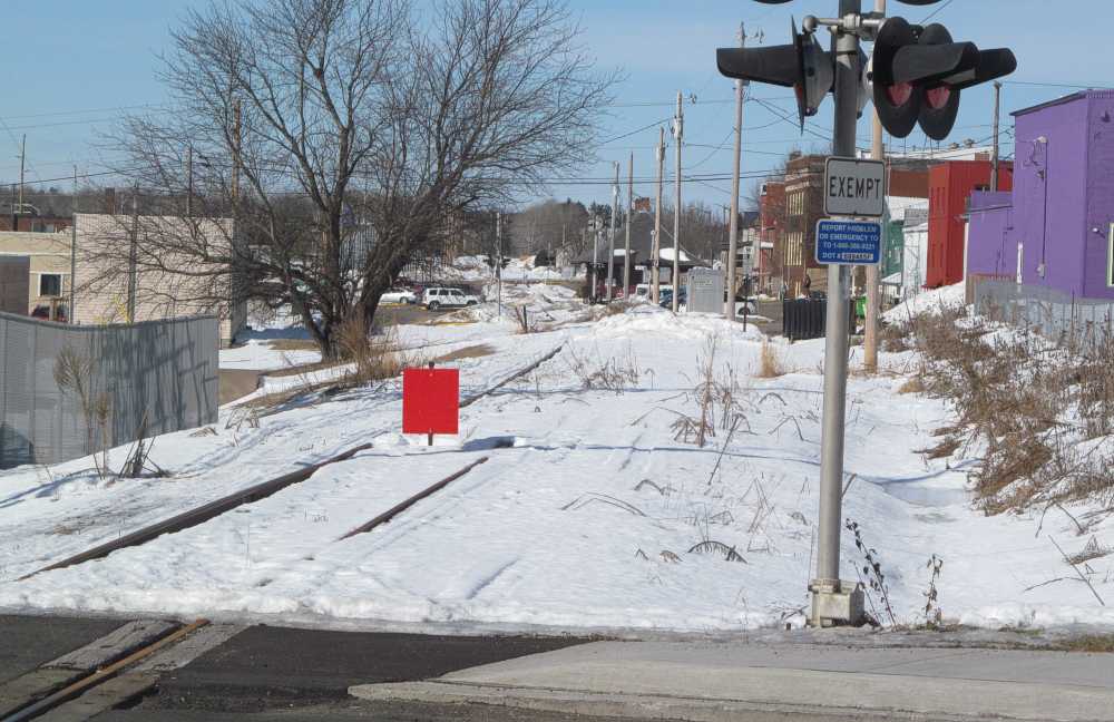 The red flag marks the end of the track for railroad service. The location can be moved, depending on what gets repaired or abandoned. Actually, the red flag could be applied 30 miles south of here in Spencer. there hasn't been service for this winter of 2022-23. |