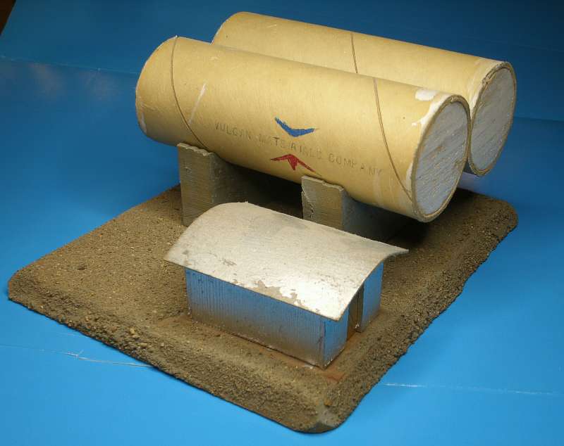 A 1965 Boys Life magazine article showed how to make a small tank display. I could do a lot better now with a computer printer to make a paper wrap for those paper towel tubes. But it's been around all these years with magic marker and some rubber stamp lettering to mimic the tank car lettering. |