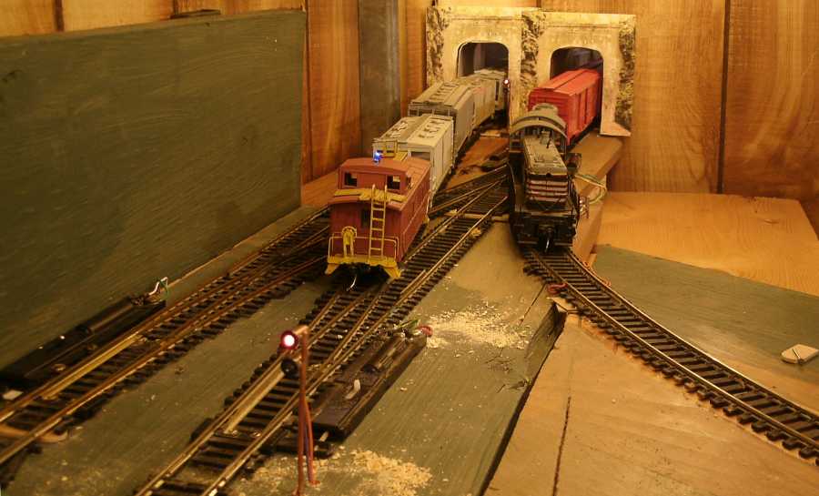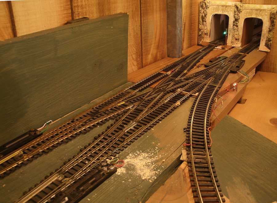And there's another problem with my operating plan, which is also not protected by automatic control. On the other side of the tunnels, the wye crosses over a mainline. This would be easier to watch if these bottlenecks would be in the same room, but they aren't. I need someone to man that tower for 24-hours a day. |
