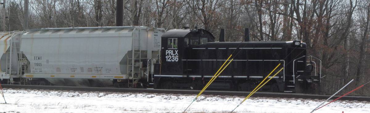 The black SW is fetching cars from the old Port Edwards paper mill storage tracks that are east of Highway 73. It replaced a big red trackmobile. This picture was last Spring, and since today is in August, there's always a chance that it could be changed out again if it is leased. |