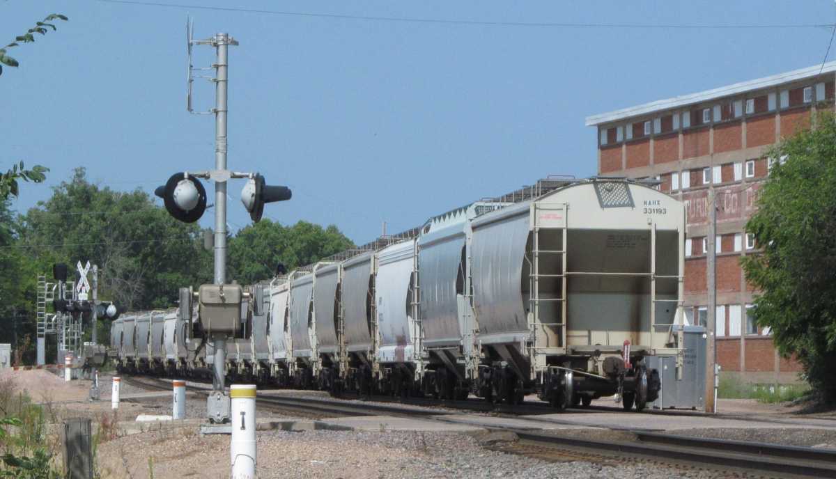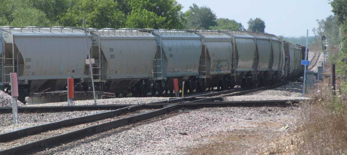 | Sand hoppers are on the tail of a westbound train leaving the Vetter's area of Stevens Point |