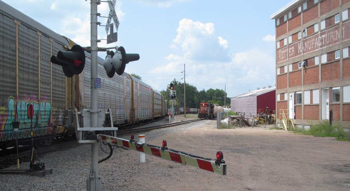 30 miles south is Adams, Wisconsin. Full of frac sand hoppers. Here's the west end of the yard where 14th Drive crosses 4 tracks. |