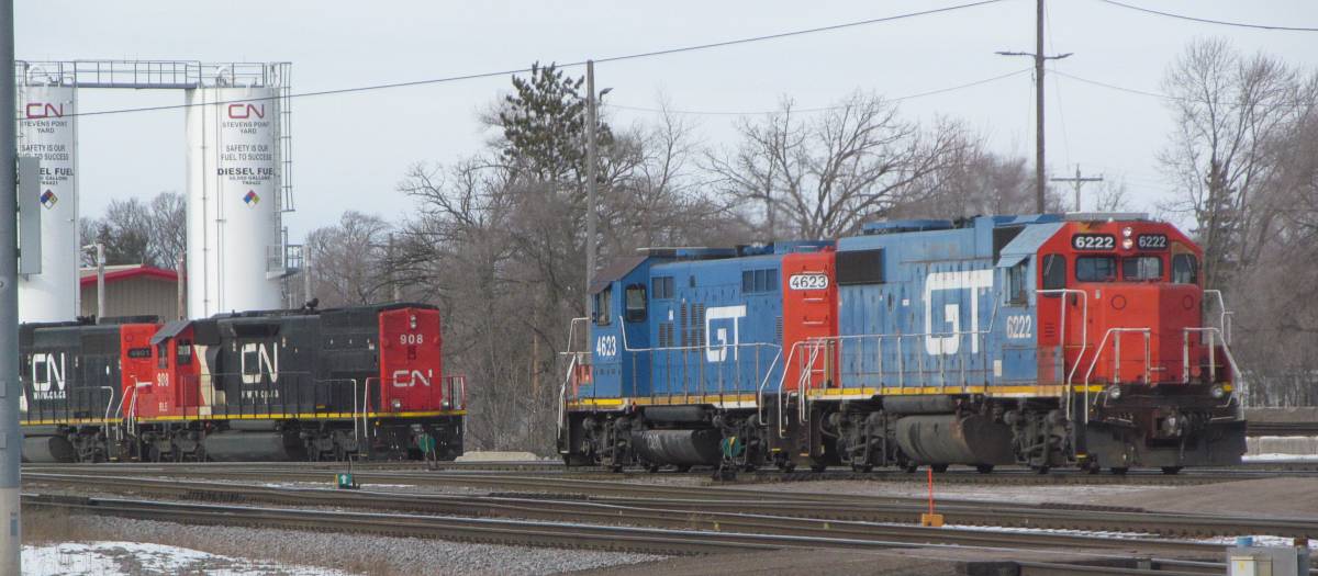 | In Stevens Point on a different day, there's more blue GT's switching the yard. |