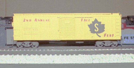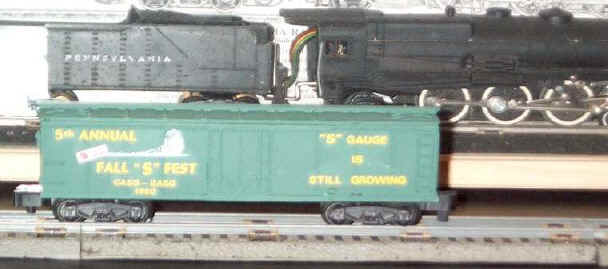The sample shell doesn't show signs of being a repaint or of ever having trucks attached so these shells were probably purchased undecorated. The coal load is a Custom Casting by Don's Depot, Monroe Center, Il. It also was packed with an Ace scale truck conversion kit. Hosted by the SLSG in South Beloit. This was the first S Fest hosted by the SLSG. |