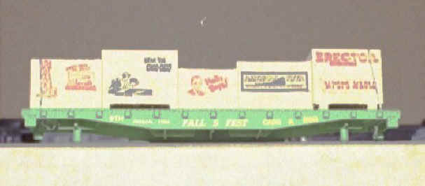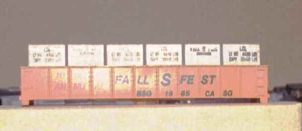 custom painted AF gondola from Hobby Surplus Sales or single dome tank car. CARLOADS OF SUPERFUN RAILROADING IS FULL OF THRILLING ACTION AND SPECTACULAR DRAMA The inside of the gondola contains a sticker indicating that it was "Custom Painted and Decaled by Ken Hein" There was a receipt packaged with the tank car indicating that the