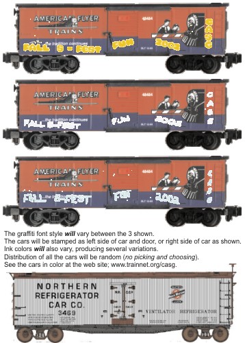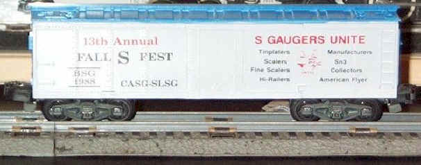 35th YEAR OF AMERICAN FLYER S GAUGE AND STILL GROWING The inside of this car contains a sticker indicating that it was "Custom Painted and Decaled by Ken Hein" Hosted by the C.A.S.G. |
