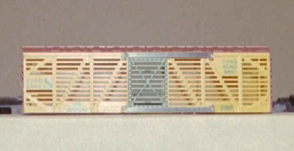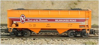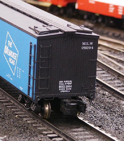 from Hobby Surplus Sales custom decorated as a Milwaukee Road bay window caboose.