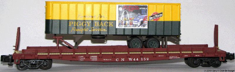 The CN flatcar and the NW trailer apart in the styrofoam holder