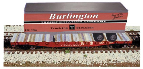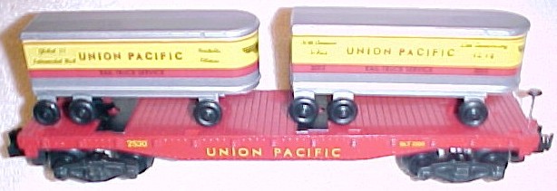 Union Pacific "Piggyback" Flat Car with Trailer Loads # 2530 Hosted by the S.L.S.G 2005 Car was a repaint of AF flatcar painted and lettered by Doug Peck. Doug also supplied and lettered the trailers to commemorate the opening of Union Pacific’s Global III Intermodal Hub in Rochelle, Illinois. It was hosted by SLSG at the Holiday Inn, Beloit, WI.