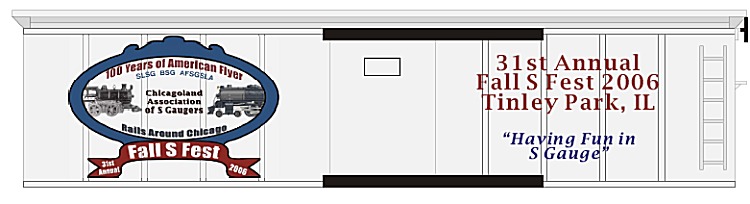 S-fest 2013 is held in Janesville and hosted by State Line S Gaugers. The location Holiday Inn Express. The 2013 Fall S Fest car is an American Flyer Type Car Produced in 3 prototypic colors by Pikesville Models. |