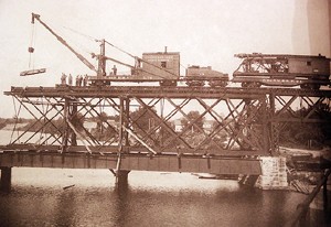 Girder crane for building bridges had something that you don't think of every day. It's own tender was attached to fuel the steam engine in the crane. This combo was more than likely very common, just not photographed very much. Cranes are available through flyer for heavy duty service. The one shown could come from a