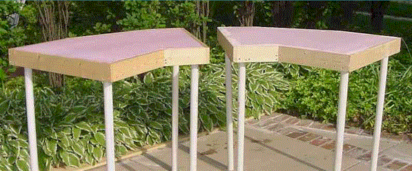 Corner Modules are built in two mirror image sections to maximize the amount of table top space available for scenery on the corners while still keeping them as compact as possible for transport. Here's a PDF format of the plans for the corner modules drawn in TurboCad 7.0.