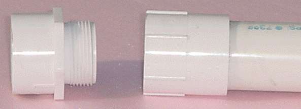 The first challenge was that PVC couplings are threaded with a pipe taper so that as you tighten a coupling you end up with a water tight joint. That works great for fixing the sump pump but I couldn't get enough movement to make this useful as a leg adjuster before the joint get tight. Then, Art Pratt saw what I was trying to do and came up with a solution. He put the couplings on his lathe and cut both the inside and outside threads flat.