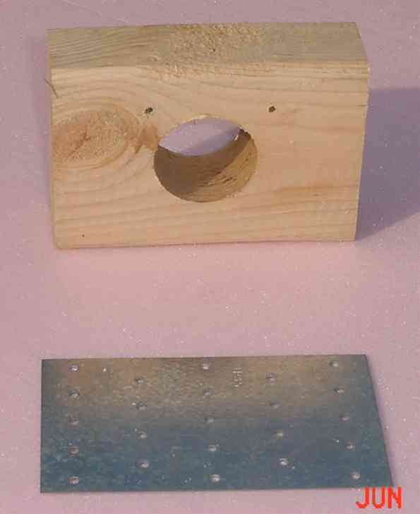 After Art worked his magic I ended up with a leg adjuster that was usable throughout the full length of the thread. This provides at least 1/2" adjustment on each leg. Next, I needed a way to connect the leg to the frame of the module. Again, after many trips to the local hardware stores I found what I needed at the Home Depot. Among the framing and deck building supplies They sell a 4"x5" flat brace that would work just fine as a stop to keep the legs from punching through the foam insulation top on the module.